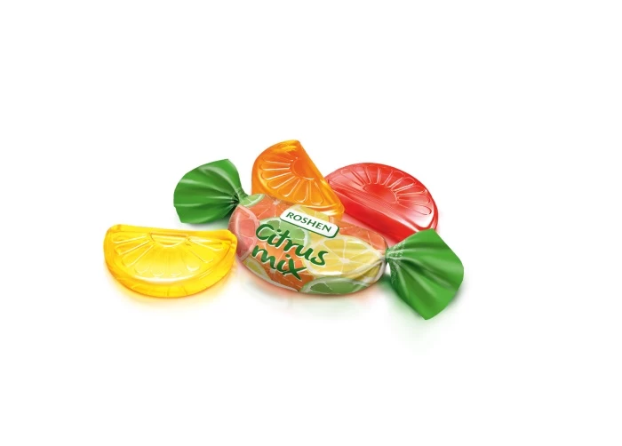Citrus Mix Roshen, un mix de dropsuri cu sucuri naturale din fructe precum portocale, lamaie si grapefruit in forma de felie de portocala. O explozie de prospetime si gust revigorant, imbinand savoarea dulce a zaharului cu aromele intense ale citricelor. Fiecare bomboana este o calatorie gustativa in lumea citricelor, obtinand combinatia perfecta intre dulceata naturala si aciditatea racoritoare a fructelor. Dropsurile Citrus Mix sunt ambalate individual, aproximativ 125 bucati in punga de 1 kg.