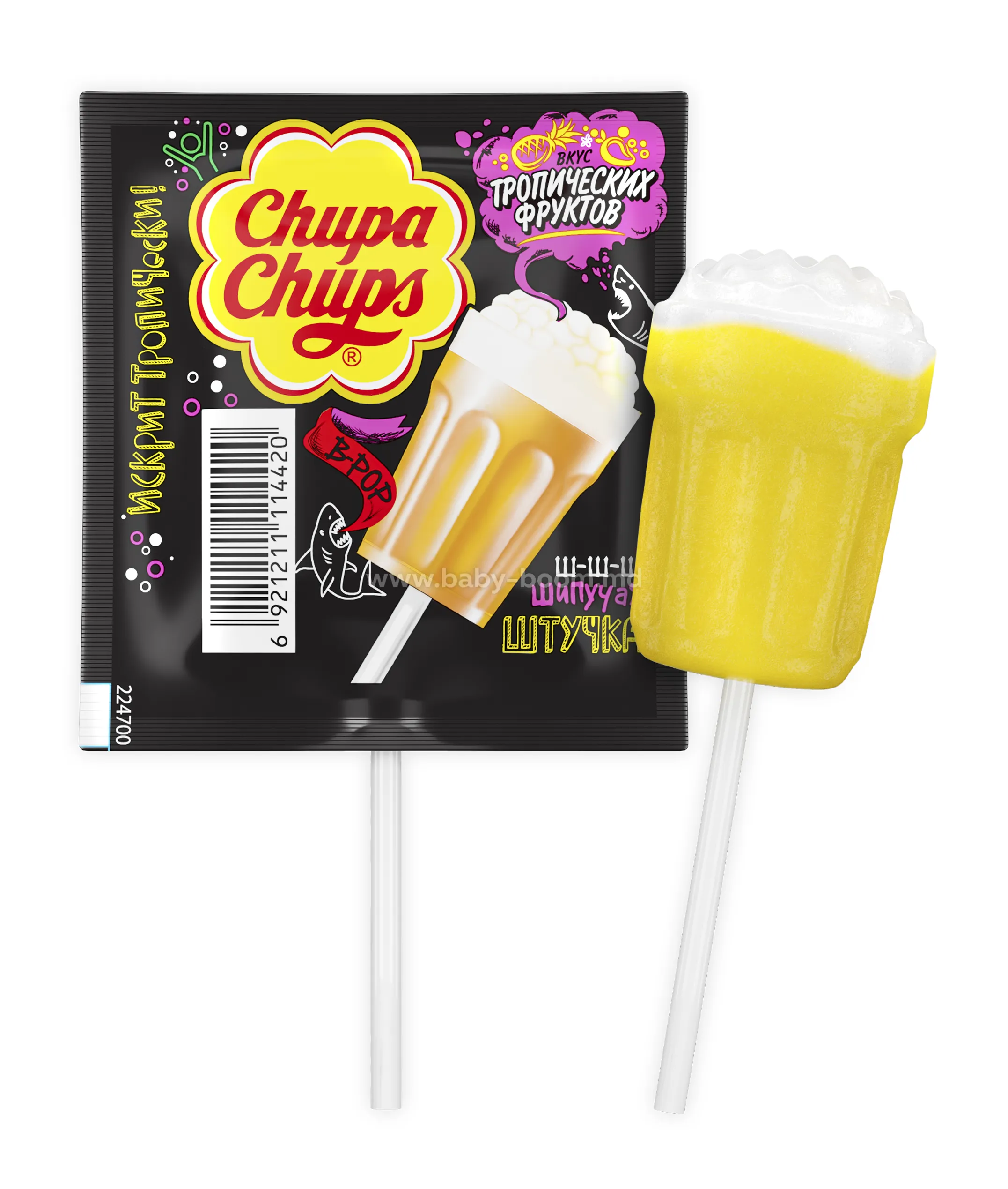 Chupa Chups B-Pop - aromă de fructe tropicale și spumă în vârful bomboanei. Spumante tropicale! Efervescentă!