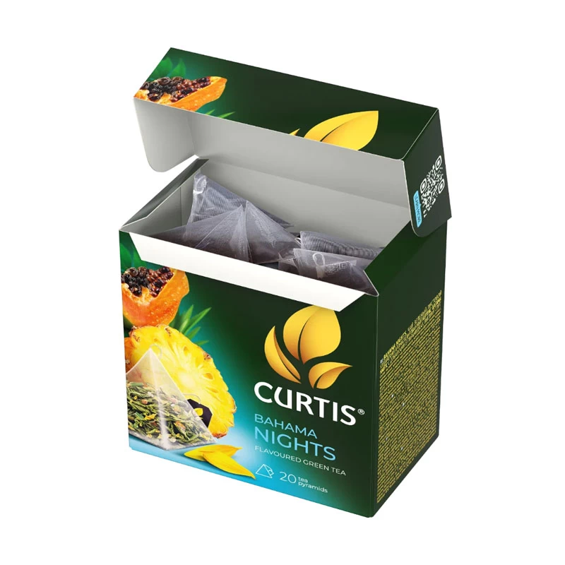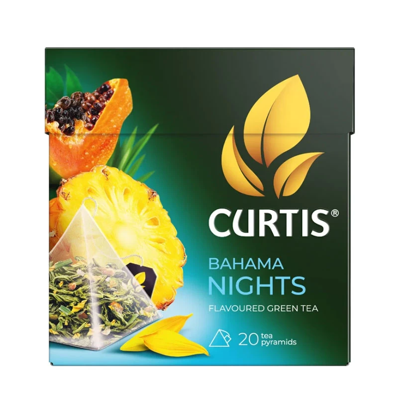Descoperă rafinamentul serilor tropicale cu Curtis Bahama Nights: un ceai verde de calitate, îmbogățit cu note fructate ușoare care trimit la papaya și ananas. Gust echilibrat, proaspăt și aromat — perfect dimineața, la pauza de prânz sau seara în familie. Plicurile tip piramidă lasă frunzele să se deschidă complet pentru o infuzie bogată.