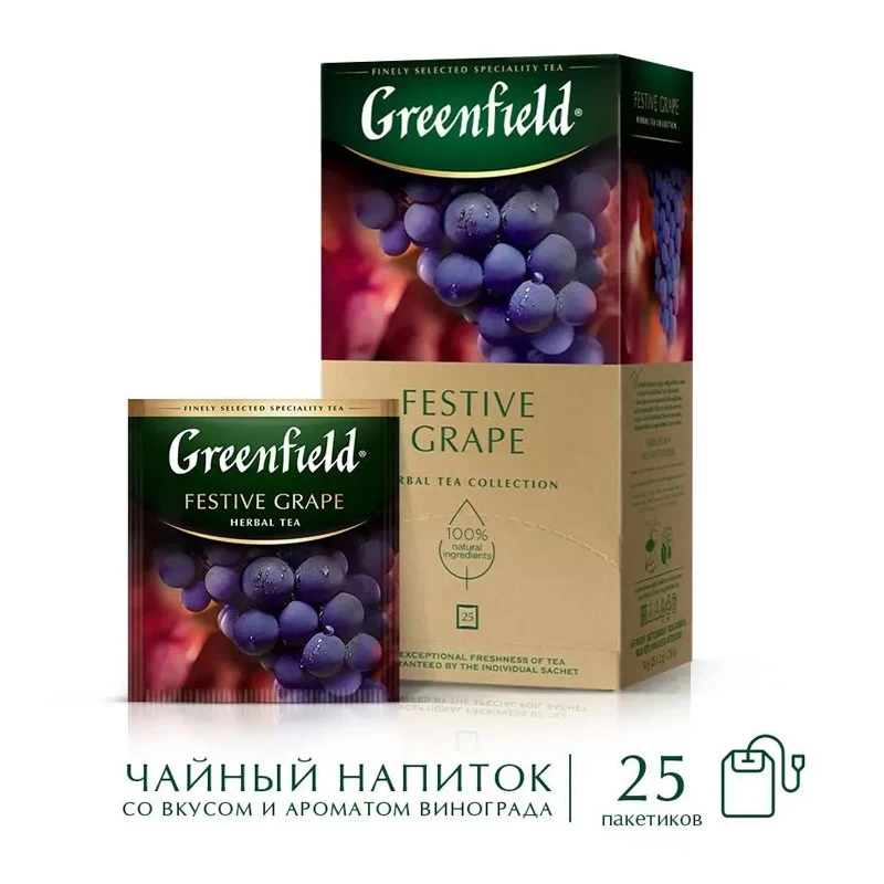 Ceai din plante Greenfield Festive Grape, plicuri 25 × 2 g