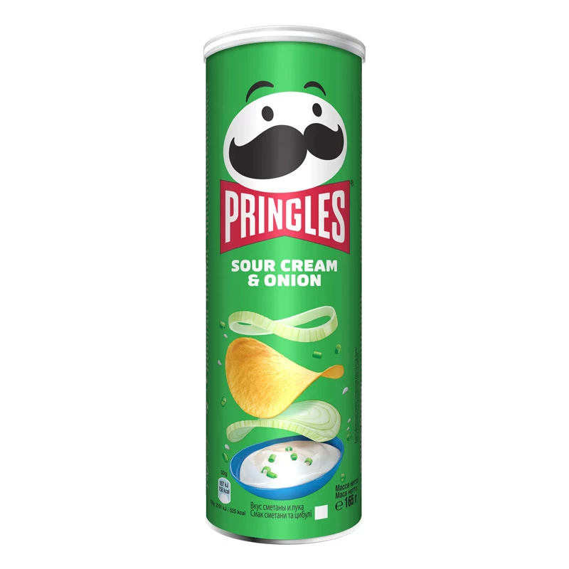 Pringles Sour Cream & Onion sunt chipsuri de cartofi care combină gustul intens al smântânii și cepei cu textura crocantă specifică. Fiecare felie este condimentată cu un amestec atent selecționat de condimente, inclusiv pudră de ceapă și smântână, oferindu-le un gust unic și memorabil. Datorită formei și ambalajului lor, chipsurile rămân întregi și proaspete, asigurând o gustare perfectă în orice moment și oriunde. Pringles Sour Cream & Onion se potrivesc de minune cu diverse sosuri și băuturi, fiind o alegere excelentă pentru petreceri, picnicuri sau pur și simplu pentru a vă bucura alături de familie și prieteni.