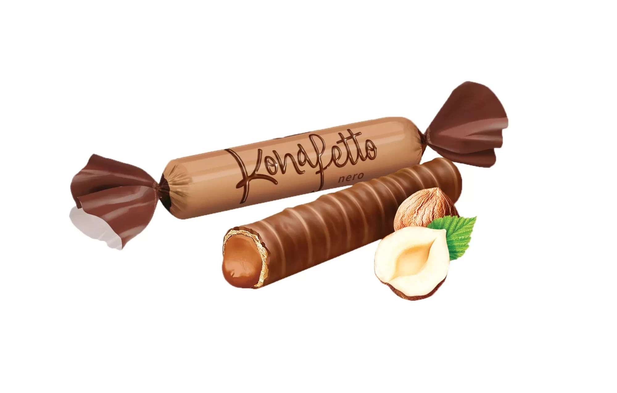 Ingrediente: zahăr, grăsimi de cofetărie (uleiuri nehidrogenate de palmier și floarea-soarelui; ulei hidrogenat din sâmburi de palmier), făină integrală de grâu, zer praf, pudră de cacao cu conținut redus de grăsimi 4,2%, miez de alune prăjite 1,8%, lapte praf degresat, ulei de cocos, ou praf, emulgator lecitină de soia, arome. Glazură de cacao - 30%; umplutură - 50%. Poate conține migdale, arahide.