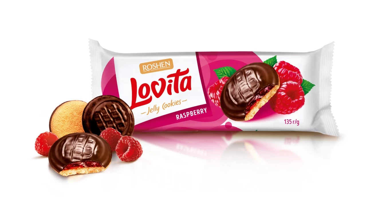 Biscuiti Roshen Lovita cu umplutura de jeleu cu gust de zmeura 135g