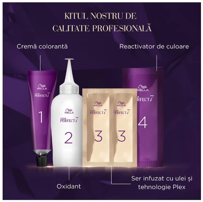 Color Perfect ofera culori 100% intense si luminoase, care rezista pana la 10 saptamani, si un par puternic si sanatos datorita serului hranitor cu tehnologia Plex.