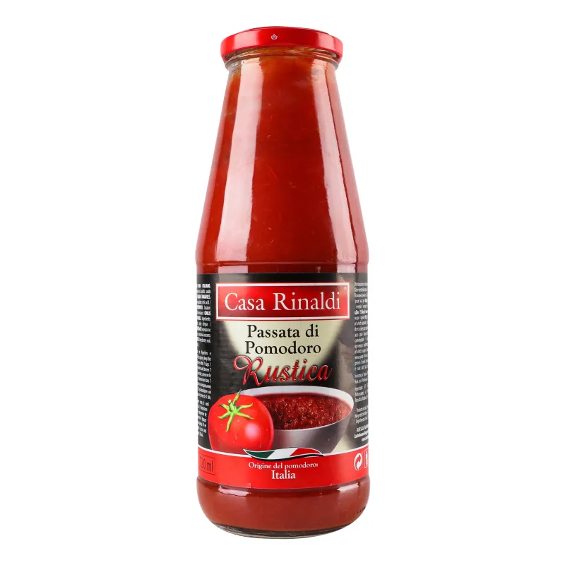 Pulpa de roșii italiene, zdrobită la o stare de consistență ideală ca un piure în propriul suc. Un produs excelent care a absorbit toate abilitățile și tradițiile specialiștilor culinari italieni. Passata este pregătită în conformitate cu toate subtilitățile de bază ale rețetei transmise de generații.