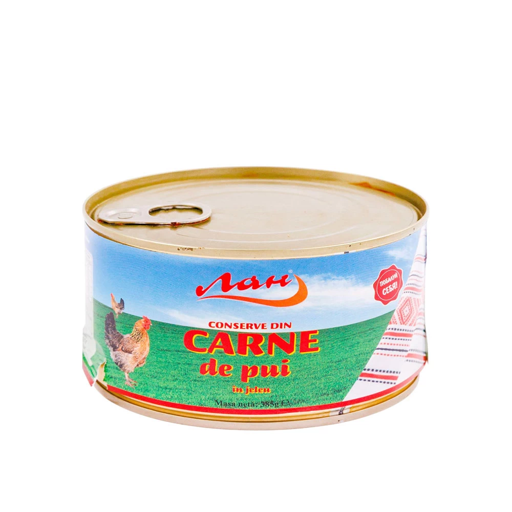 Carne de pui în jeleu Лан – un preparat tradițional, gătit din carne de pui de calitate superioară. Este fragedă, suculentă și aromată, ideală pentru a fi servită ca fel principal sau pentru a fi adăugată în diverse rețete – de la salate și paste, până la tocănițe. Produsul este conservat atent, păstrând gustul natural și valoarea nutritivă a cărnii. Perfect pentru o masă rapidă și consistentă.
