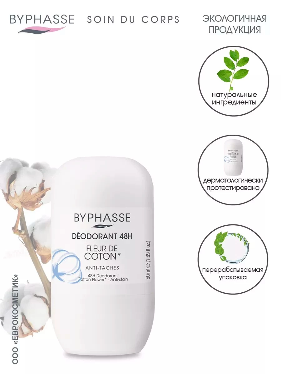 - Byphasse Deodorant roll-on 24H Floarea de bumbac 50 ml