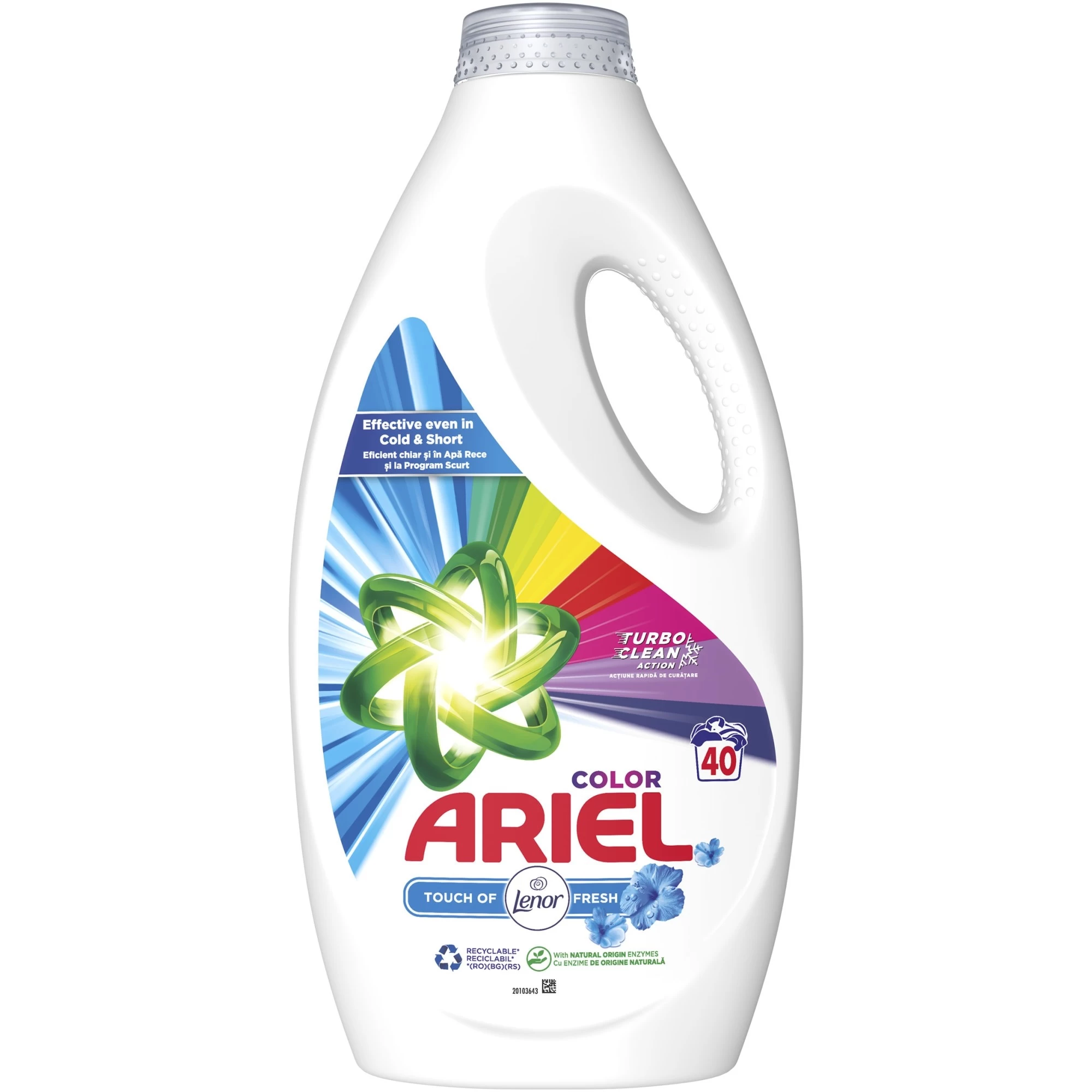 Ariel Touch of Lenor Color detergent lichid ofera o indepartare exceptionala a petelor de la prima spalare. Desi detergentul Ariel este dur cu petele, este delicat cu tesaturile si mentine stralucirea culorilor.