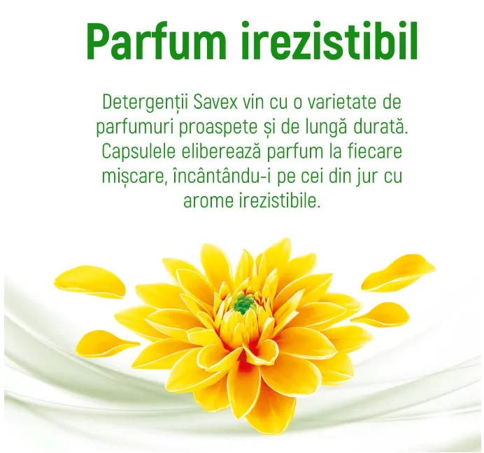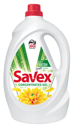 Gelul concentrat SAVEX asigura curatarea profunda a tesaturilor, lasadu-le curate si parfumate de la prima spalare.