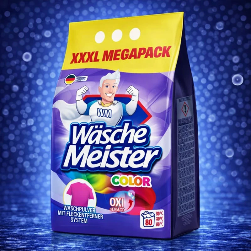 Detergentul pudră economic german WäscheMeister, cu o cantitate de 6 kg în ambalaj folie, este suficient pentru până la 80 de spălări. Produsul este destinat tuturor tipurilor de țesături colorate – protejează culorile acestora și le ajută să își păstreze aspectul de nou pentru mai mult timp. Se dizolvă foarte bine în apă, astfel încât nu lasă pe țesături urme sau depuneri.