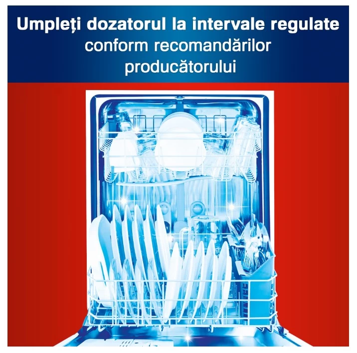 • Compatibila cu toate tipurile de masini de spalat vase: aceasta are o putere de actiune intensa si este special granulata pentru utilizarea in masina de spalat vase, indiferent de tipul acesteia.