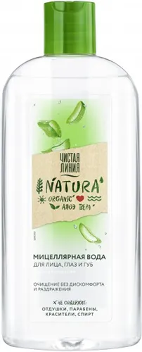 Apa micelară Clean Line Natura pentru toate tipurile de piele curăță delicat și ușor pielea, îndepărtează eficient chiar și machiajul permanent.