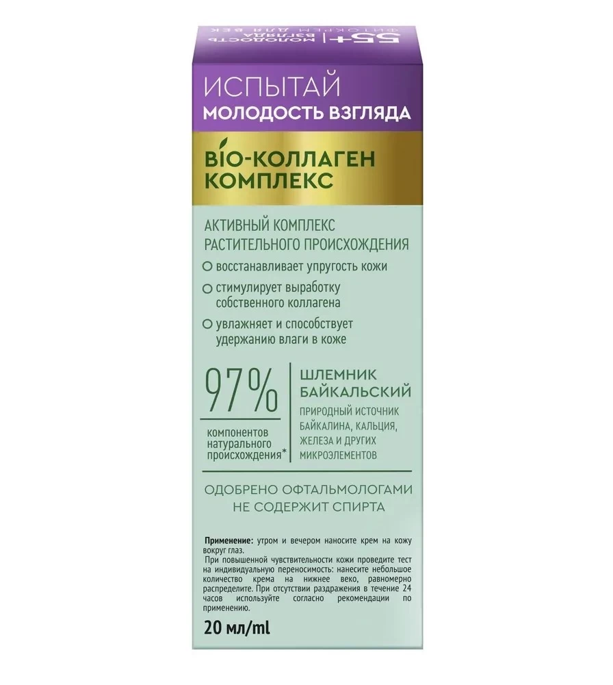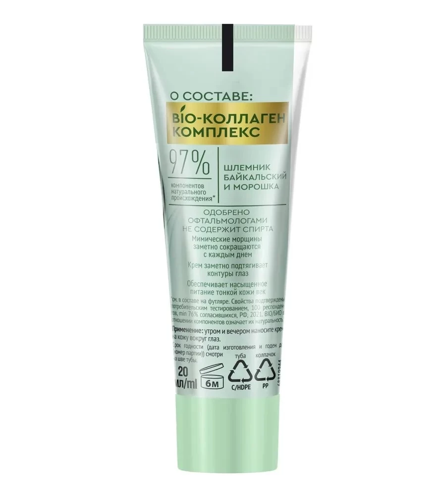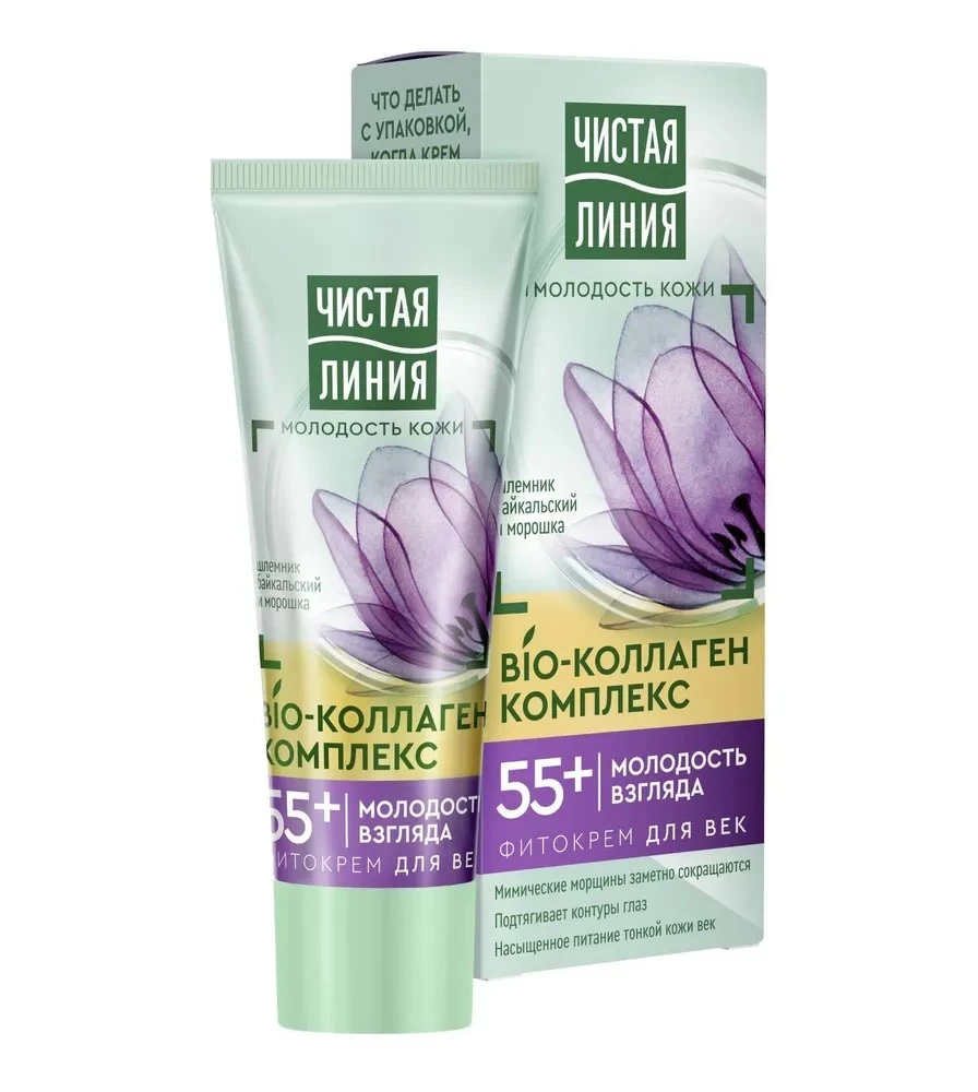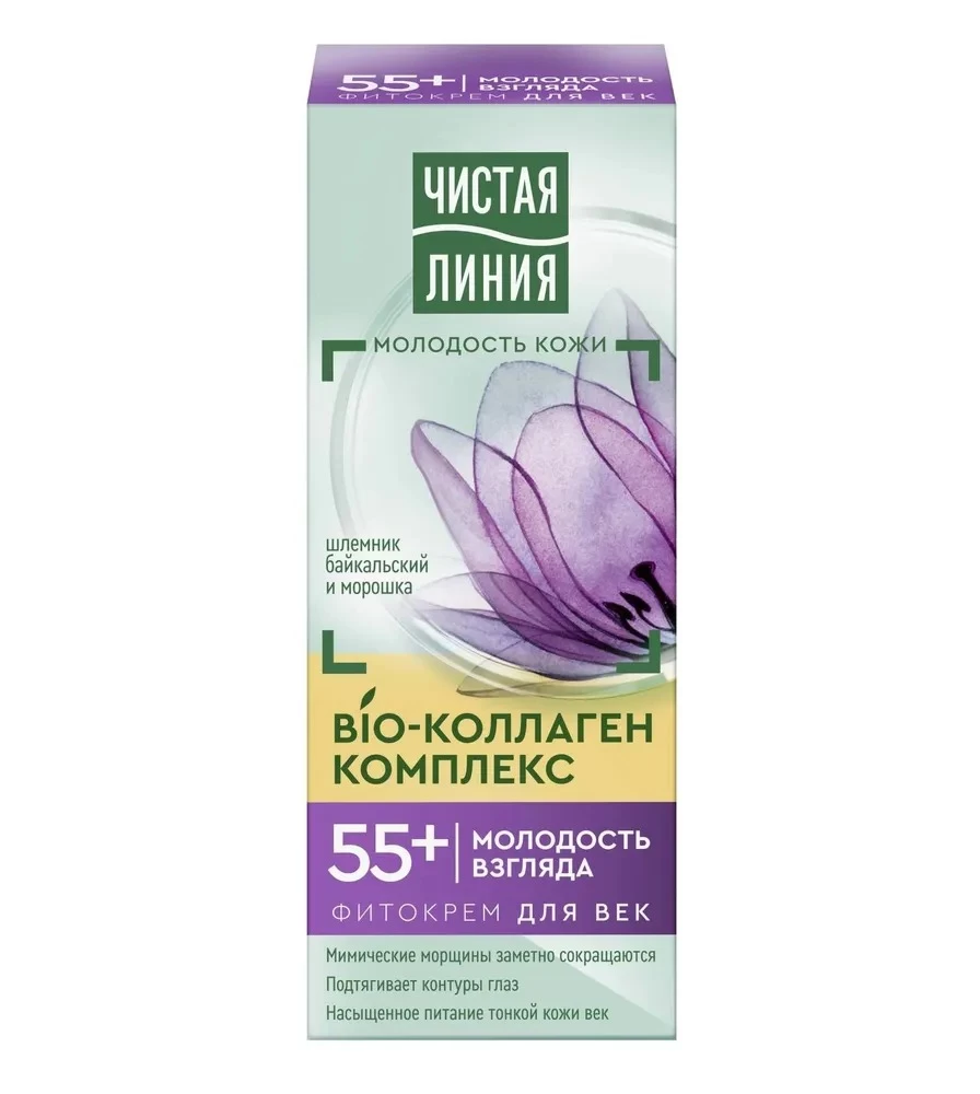 Phyto-cremă pentru pleoape Shlemnik și cloudberry din linia de produse de la 55 de ani cu complex Phytocollagen are un efect de ridicare, reducând vizibil ridurile. Componentele naturale active din cremă reduc cercurile întunecate de sub ochi, pielea devine netedă și fermă, plină de strălucire și energie tinerească.