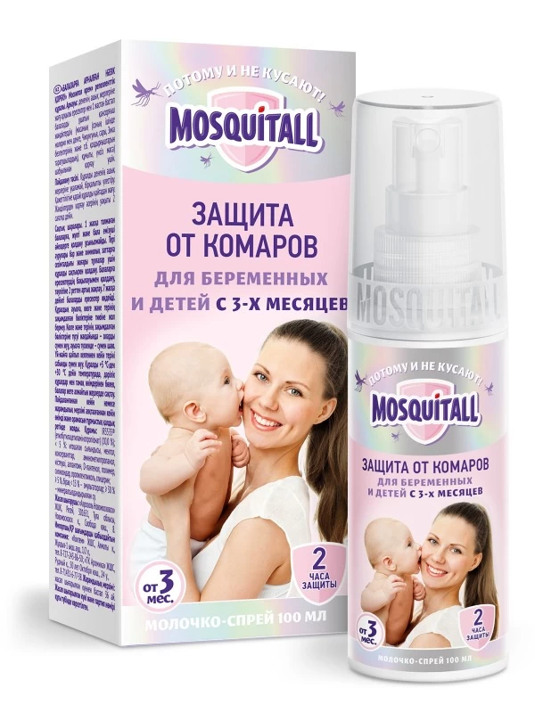 Mosquitoll Repelent pentru țânțari Protecție blândă pentru bebeluși și femei însărcinate, spray-ul de lapte poate fi folosit ca repelent împotriva țânțarilor, țânțarilor, moustelor și a altor insecte care sug sângele, care respinge și protejează împotriva mușcăturilor și atacurilor de țânțari.Produsul conține cel mai sigur repelent IR3535, care poate fi folosit la copii începând cu vârsta de 3 luni. Nu utilizați laptele la mamele care alăptează și la copiii cu vârsta sub 3 luni. Sprayul antițânțari Mosquitol pentru femei însărcinate trebuie aplicat pe piele fără a freca, cu mișcări ușoare, întinzându-se pe toată suprafața. Efectul protector al spray-ului - 2 ore, pentru un copil sub un an aplicarea repetată este contraindicată (pentru o aplicare trebuie folosite mijloace alocate ca urmare a 2-3 apăsări pe dozator), după un an, spray-ul de țânțari poate fi aplicat de cel mult 2 ori pe zi. Evitați să ajungeți cu mijloacele pe pielea deteriorată, dacă este necesar - clătiți cu apă caldă. Metoda de aplicare. Pulverizați produsul în palma mâinii și distribuiți-l cu grijă uniform pe părțile expuse ale corpului, fără a freca. Dacă este necesar, reaplicați produsul. Timp de acțiune de protecție împotriva insectelor până la 2 ore.