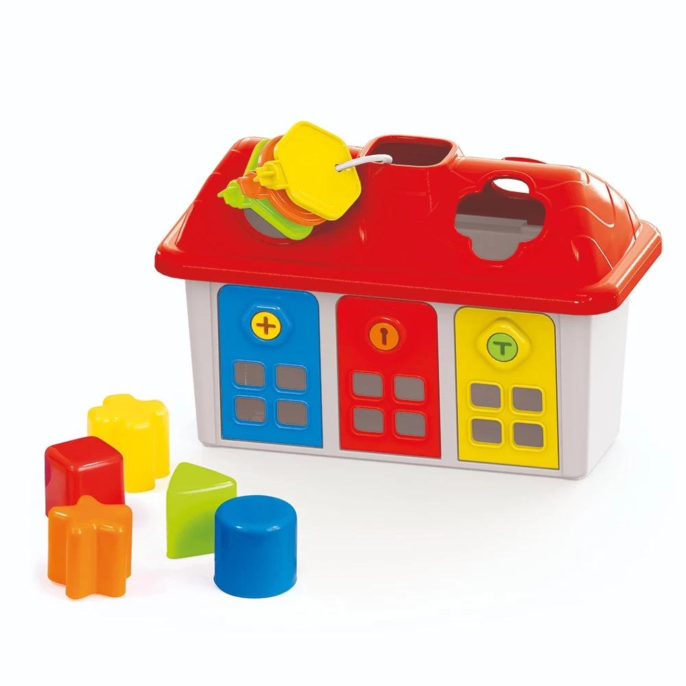 În creștere, copilul începe să înțeleagă că toate obiectele din jurul lui sunt diferite și diferă nu numai prin culoare, ci și prin formă. Dar pentru a-i face și mai ușor pentru bebeluș să se familiarizeze cu aceste adevăruri, invită-l să asorteze matrițele din acest set cu orificiile corespunzătoare de pe uși și acoperiș.