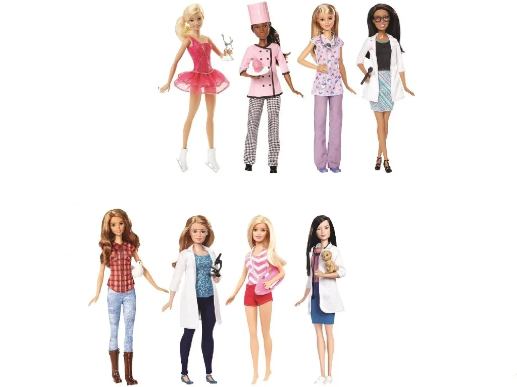 Hainele păpușilor sunt prezentate în trei culori: roz, mov și lila.