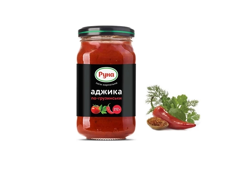 Adzhika este un produs hipocaloric care întărește imunitatea. Sosul de la Runa va completa marinadele și diverse gustări, precum și conservele de casă.