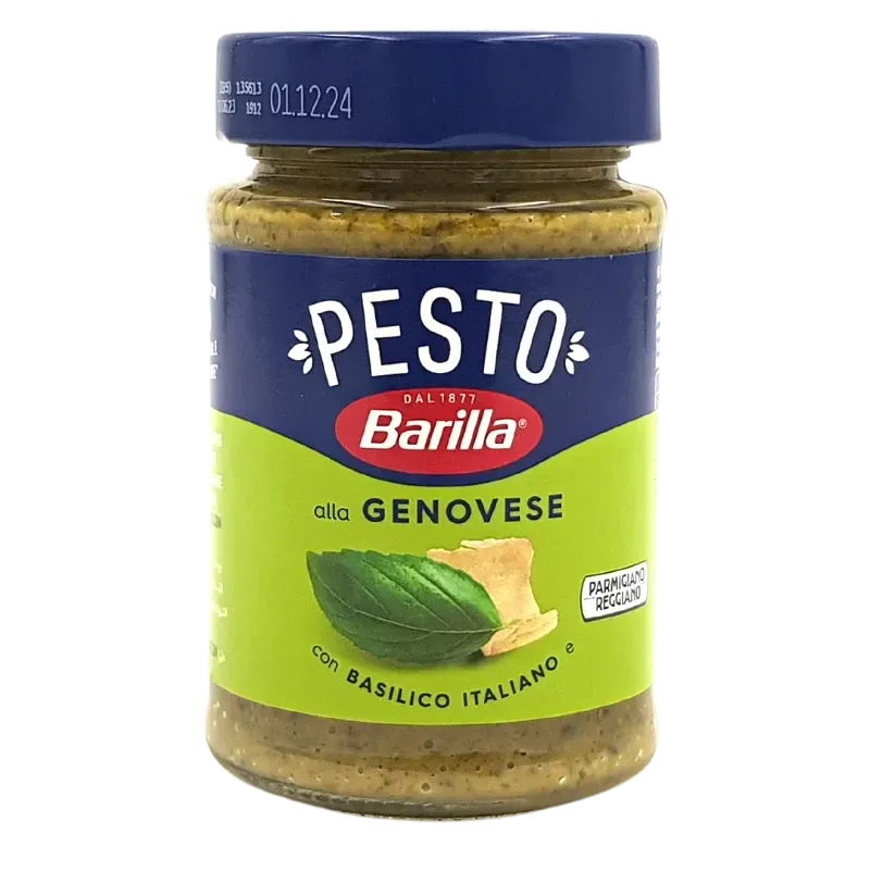 - BARILLA PESTO: Pesto Barilla alla Genovese este fabricat cu 100% busuioc italian din agricultură durabilă, în conformitate cu sistemul de durabilitate ISCC PLUS și Parmigiano Reggiano DOP.