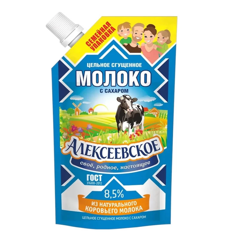 Alekseevskoe Lapte condensat integral cu zahăr 8,5% – pachet familial
