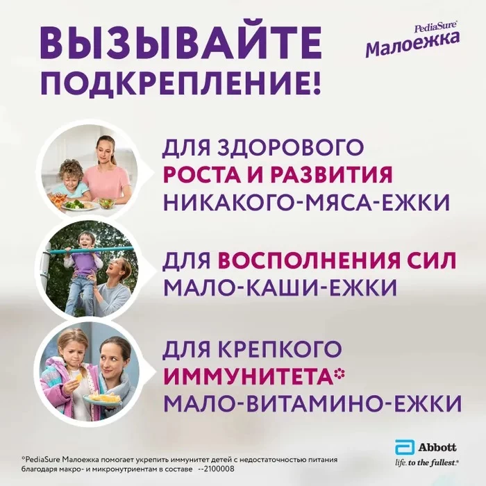 Încercați, de asemenea, PediaSure Maloja în formă uscată, care este convenabil de pregătit acasă. Produsul poate fi folosit ca supliment la dieta principală, în loc de un al doilea mic dejun sau o gustare de după-amiază.