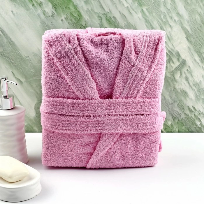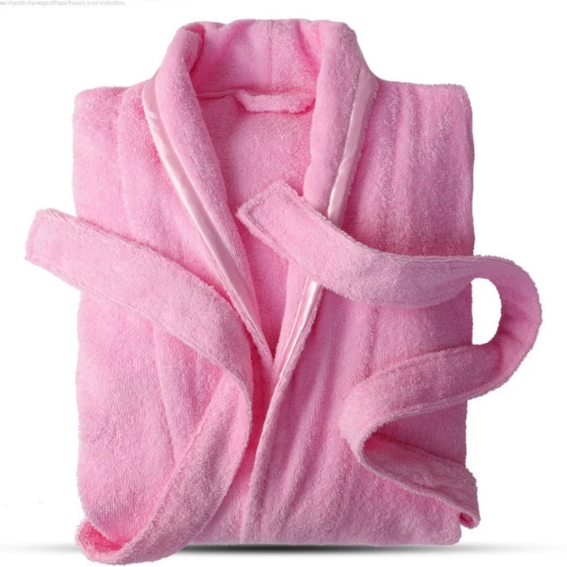 Acest halat de baie roz, fabricat din prosop de bumbac, este perfect pentru a te invalui in confort si lux dupa o baie relaxanta sau o sesiune de spa.