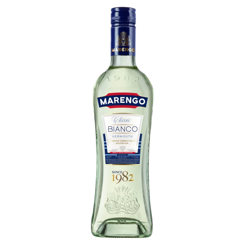 Marengo Classic Bianco 0,5L este un vermut clasic alb desert, creat după o rețetă italiană din struguri copți și ierburi și condimente naturale. Băutura are o culoare galben-pai și un parfum intens de ierburi aromate. Gustul este moale, armonios, cu nuanțe de condimente, ierburi și struguri copți.