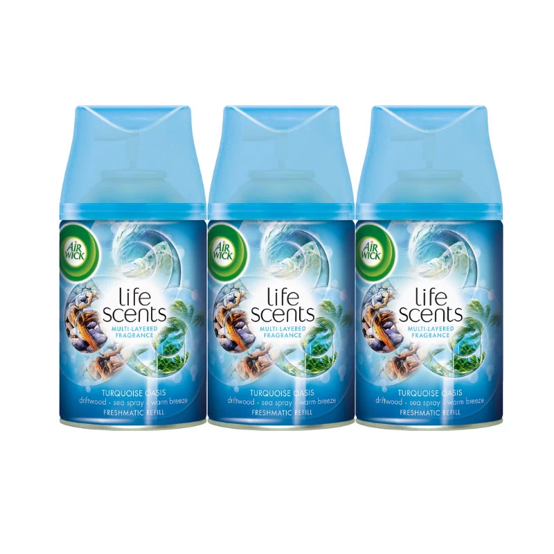 Noua tehnologie Life Scents a odorizantelor de camera Air Wick permite difuzarea simultana a 3 arome care se pot percepe individual in colturi diferite ale incaperii.