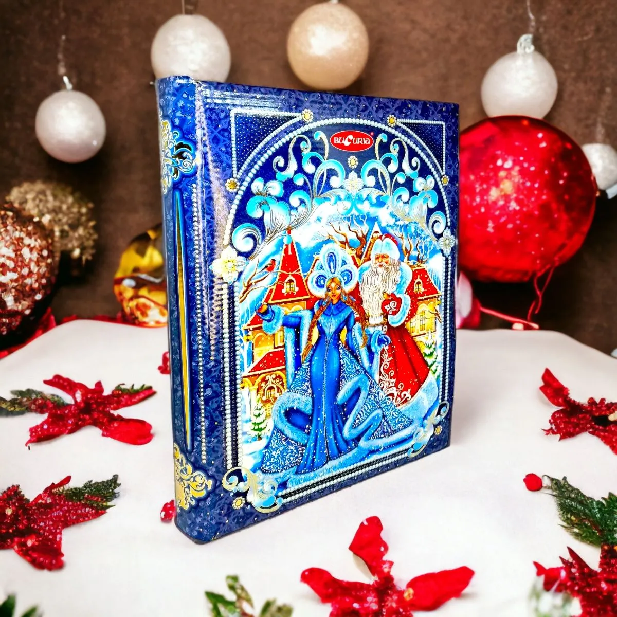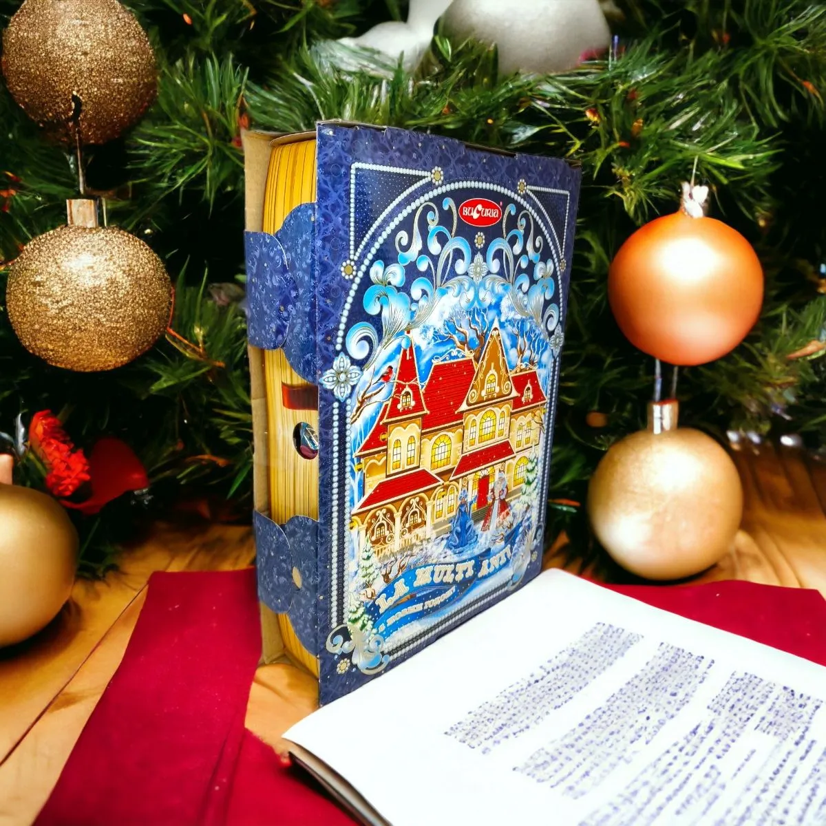 Cutia Cadou cu Bomboane Bucuria "Cartea Magica" 1kg Sună minunat! Cutia cu bomboane "Bucuria" în formă de carte este cu siguranță un cadou adorabil și nostalgic, aducând aminte de dulciurile copilăriei. Este o idee frumoasă pentru a împărtăși bucuria și dulcegăriile cu cei dragi.