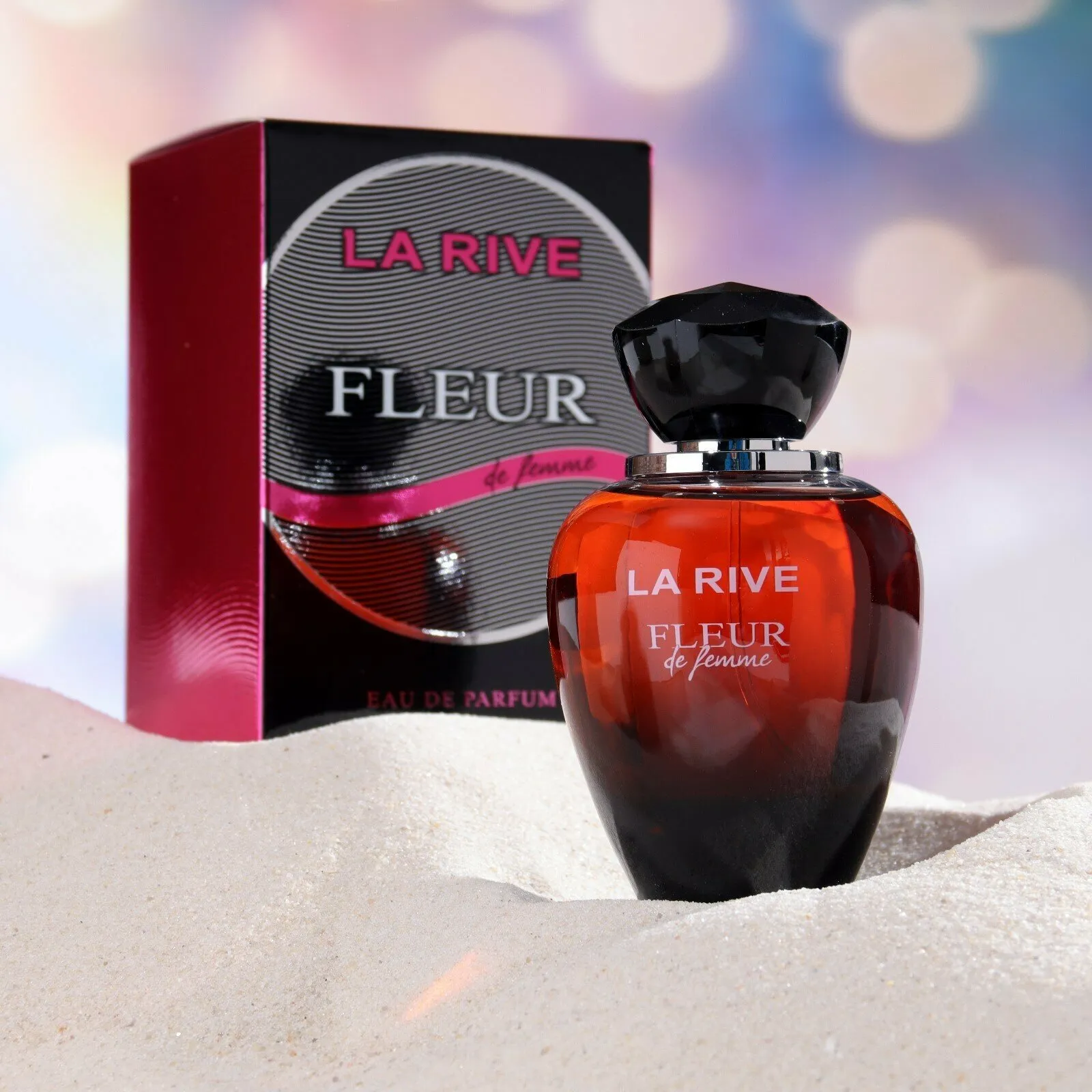 Pentru cele romantice și feminine, La Rive a creat parfumul Fleur De Femme. Parfumul lemnos, plin de un cocktail de fructe și flori, este persistent și corpolent. Acesta va lăsa o urmă frumoasă care va aminti tuturor de frumosul său proprietar. Sunetul compoziției se deschide cu un vârtej de fructe: cireșul cochet, portocala răcoritoare, migdala dulce-amăruie subtilă și piersica cu miere umplu totul în jur cu bucurie și distracție. Acesta este urmat de un buchet floral încântător cu acorduri lemnoase: iasomia parfumată, cedrul calmant, neroli nobil, patchouli pământesc, trandafirul blând și lemnul de santal misterios sună un pic mai reținut. Fasolea tonka subtilă, vanilia subtilă și mosc senzual completează parfumul. Sex: pentru femei Tipul de aromă: lemnos, fructat, floral. Notă de început: cireșe, portocale amare, migdale, piersici. Notă de inimă: iasomie, cedru, neroli, patchouli, trandafir, santal. Notă finală: Boabă de tonka, vanilie, mosc