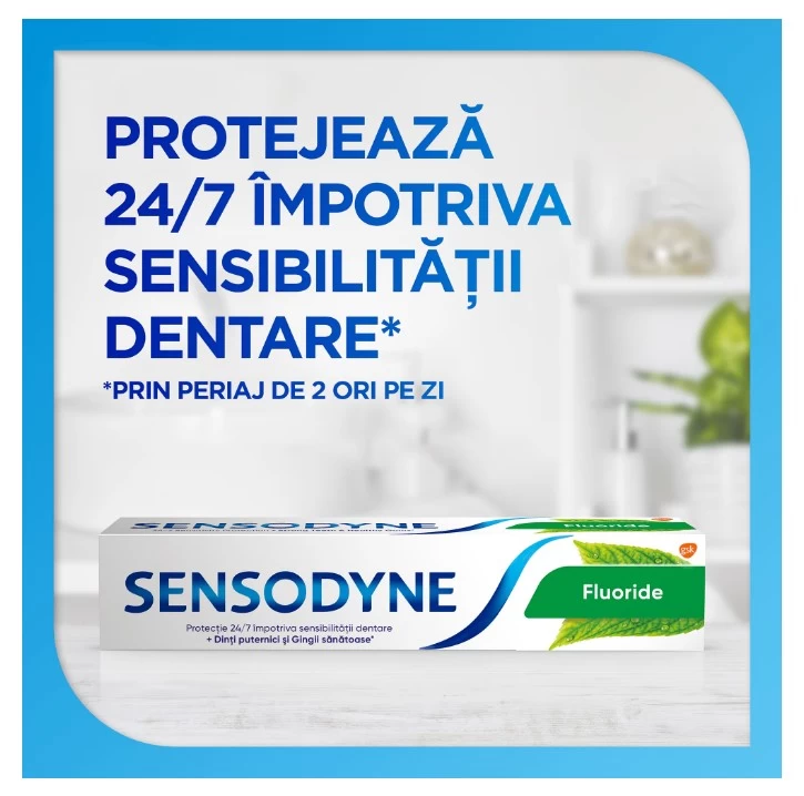 Sensodyne Fluoride este o pasta de dinti ce ofera protectie impotriva sensibilitatii dentare*. In acelasi timp ofera protectie impotriva cariilor si are o aroma mentolata, proaspata, care lasa o senzatie de curatenie si prospetime a gurii.