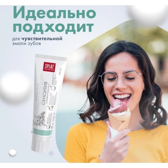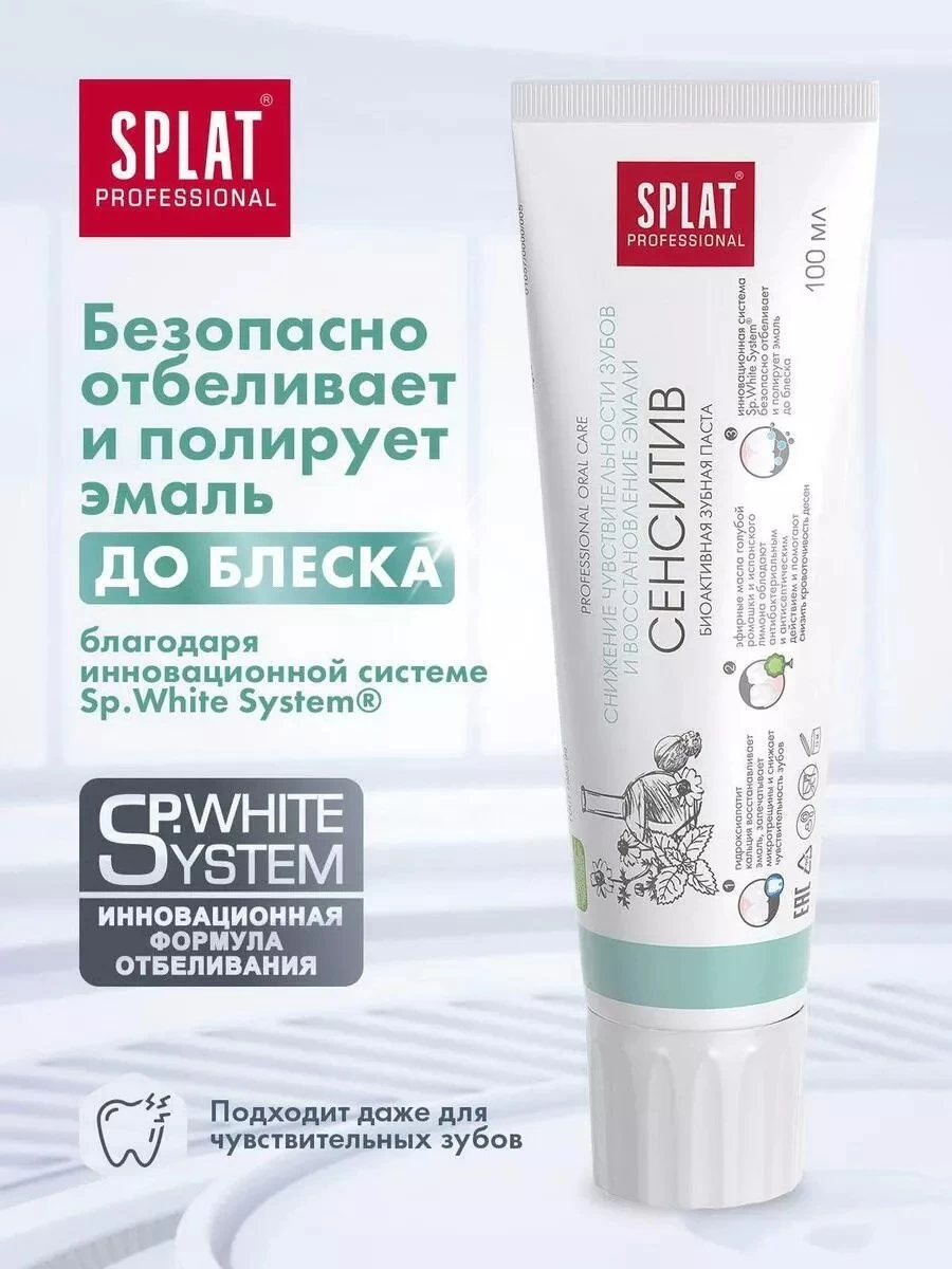 Pasta de dinți Splat Sensitive pentru reducerea sensibilității dentare și refacerea smalțului descompune eficient placa bacteriană și lasă dinții perfect netezi prin combinarea enzimei naturale Papaina cu Polydon®, un agent de albire cu greutate moleculară mare. Sistemul inovator Sp.White System® albește și lustruiește în siguranță smalțul până la o strălucire strălucitoare.