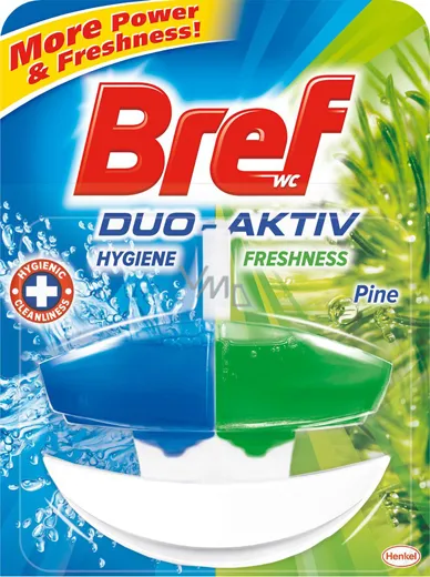 Bref Duo Aktiv este singurul odorizant de toaleta bicameral care asigura o curatare igienica a toaletei si un parfum indelungat.