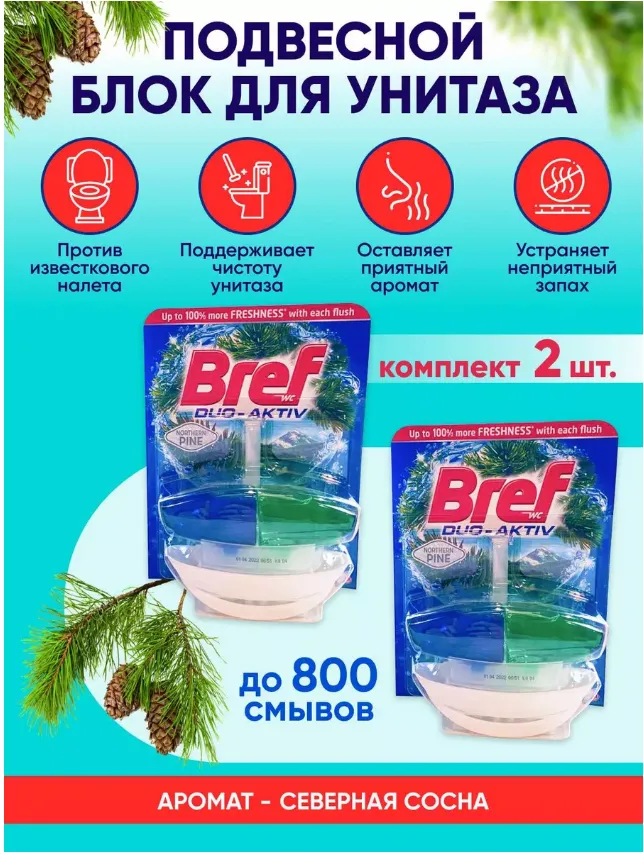 Odorizant toaleta Bref Duo Active Pine, cu sistem de aplicare