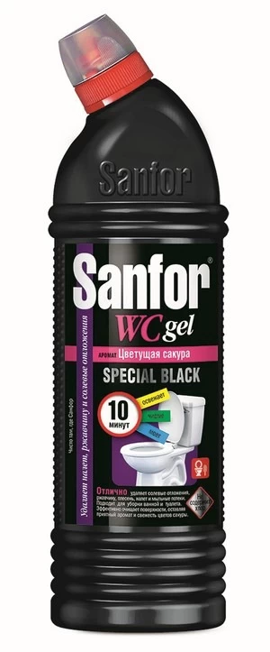Sanfor WC Gel Special Black Ultra Strength face față perfect murdăriei dificile din baie și toaletă. Potrivit pentru curățarea și dezinfectarea toaletelor pentru animale de companie.