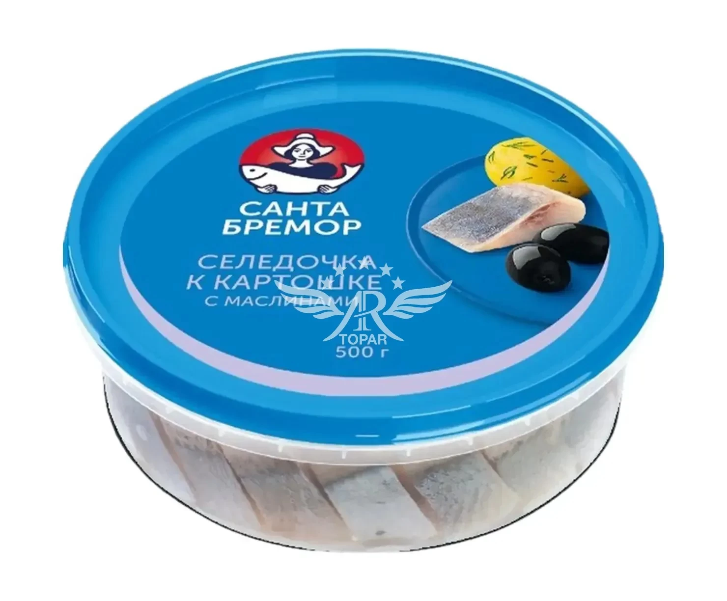 - Santa Bremor Hering la cartofi fileu bucati cu masline 500g