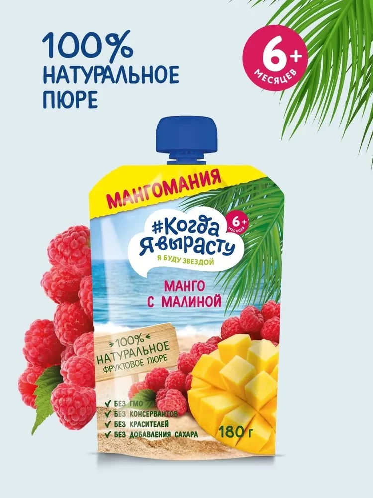 Piureul de fructe "Când o să fiu mare" Măr-mango-framandă este un desert echilibrat și sănătos pentru bebeluși, recomandat copiilor cu vârsta peste 8 luni. Piureul este o gustare preferată nu numai de bebeluși și copii mai mari, ci și de școlari, adolescenți și adulți care susțin un stil de viață sănătos.
