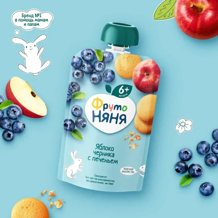 Piureul de fructe într-un ambalaj moale "FrutoNyanya" este o gustare gustoasă și sănătoasă, care este convenabil de luat cu dvs., iar ambalajul moale și luminos va atrage atenția copilului dvs. și îi va permite să mănânce independent.