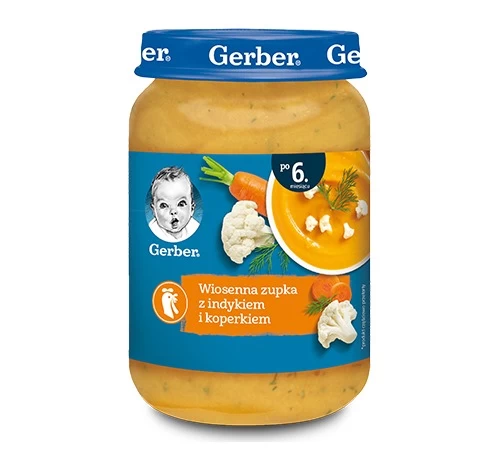 Gerber® Piure de supă cu curcan și legume, pentru copii de la 6 luni. Supă de legume, îmbogățită cu carne de curcan și condimentată cu mărar proaspăt. Proiectat pentru bebelușii cu vârsta peste 6 luni. Va funcționa bine nu numai ca parte a unui fel de mâncare, ci și ca cină. Sterilizat.