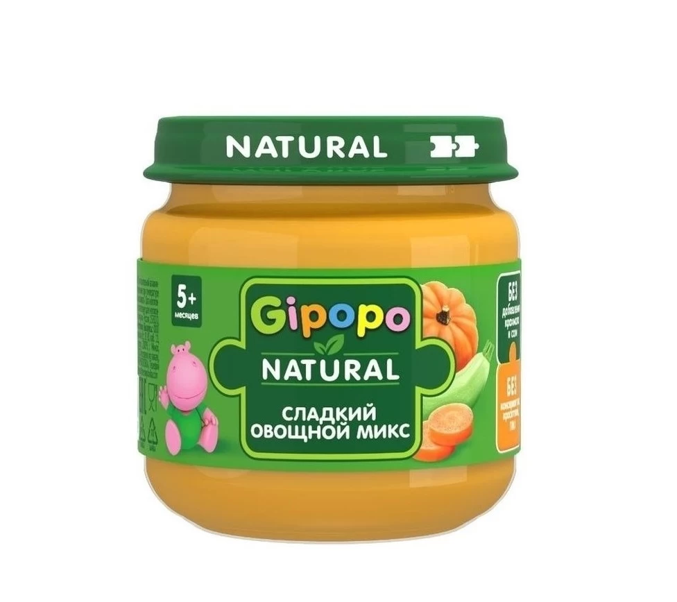 Piureul de legume pentru copii GIPOPO „Sweet Vegetable Mix” este conceput pentru hrănirea copiilor de la vârsta de 5 luni. Piureul este ideal pentru a continua familiarizarea bebelușului dumneavoastră cu legumele.