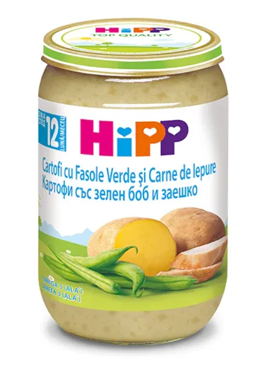 - HiPP Piure de Iepure, cartofi cu fasole cu sparanghel (12+ luni), 220 g