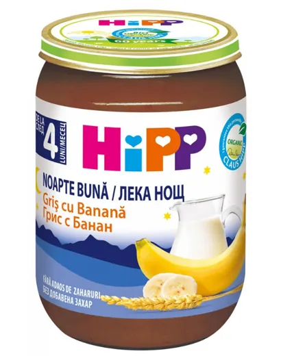 HiPP Piure gris cu lapte si banana Good Night (4+ luni), 190 g