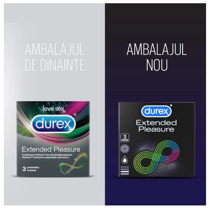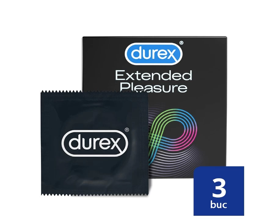 Prezervativele Durex Exteded Pleasure ofera o senzatie de lunga durata datorita lubrifiantului special PerformaTM ce contine benzocaina 5%, un anestezic local care intarzie orgasmul lui.