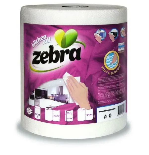 Prosoape de bucătărie Zebra este ajutorul dumneavoastră indispensabil în menținerea curățeniei în bucătărie. Produsul este fabricat din 100% celuloză folosind tehnologia "Point to Point", care conferă prosoapelor o textură deosebit de moale și proprietăți excelente de absorbție.