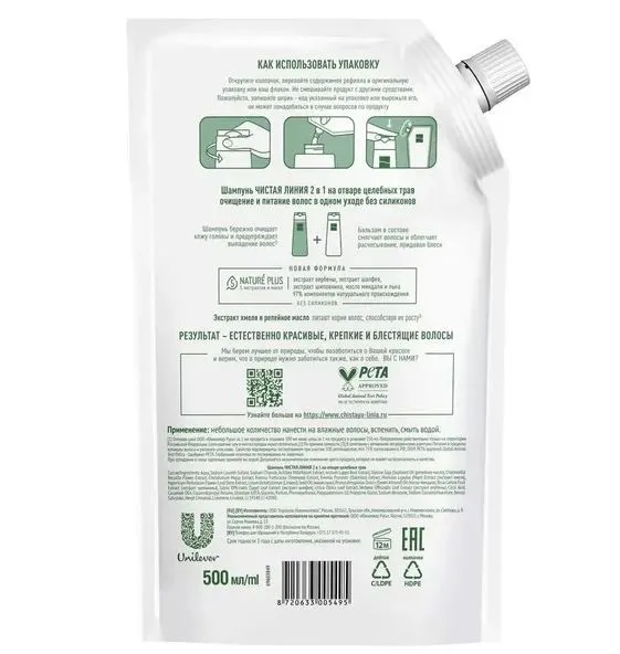 - Cistaia Linia Sampon pentru par 500 ml 2 in 1 rezerva