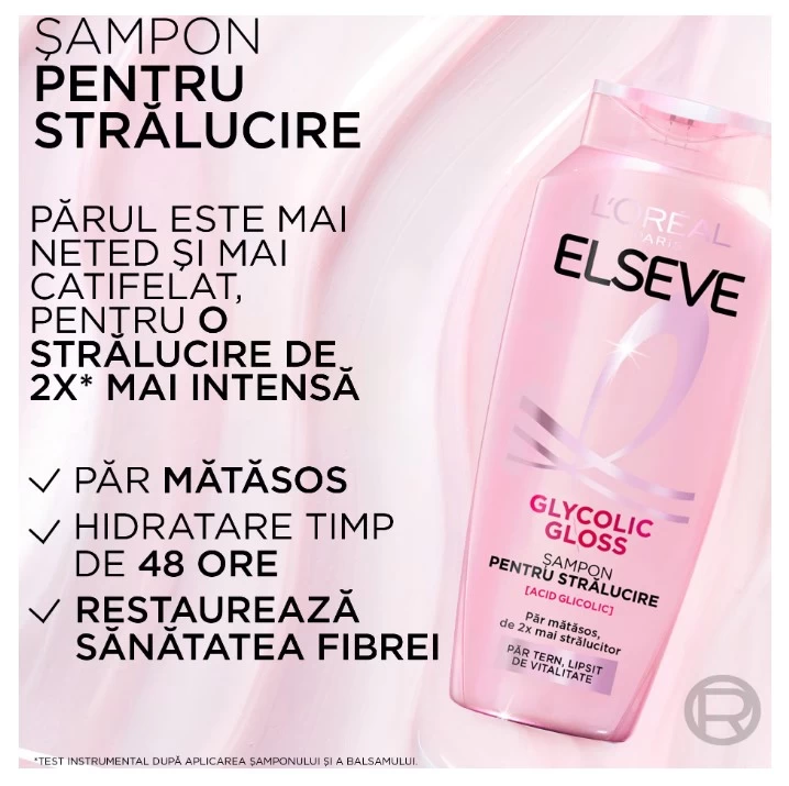 Samponul Elseve Glycolic Gloss imbogatit cu [Acid Glicolic] imbunatateste calitatea parului tern, lipsit de vitalitate. Un sampon care are grija de fibra capilara!