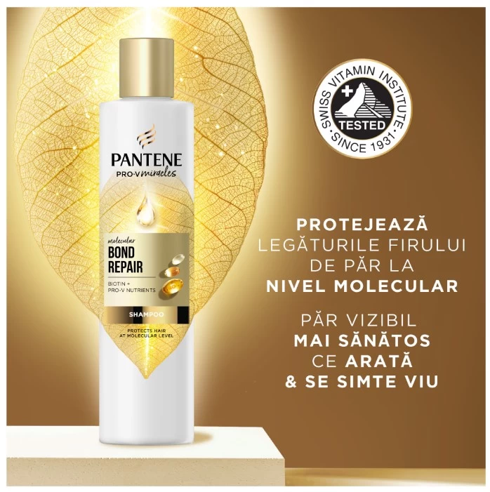 Protectia legaturilor din structura parului: cu formula Pro-V si tehnologia Active Nutri-Plex, samponul Pantene Pro-V Miracles Bond Repair este conceput pentru a proteja structura parului si pentru a-l intari impotriva deteriorarii cauzate de coafare.