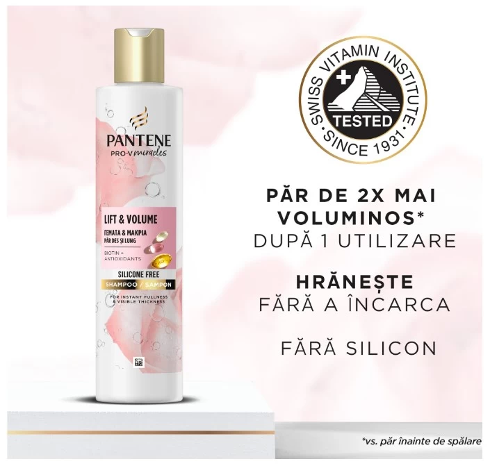 Descopera samponul Pantene Pro-V Miracles Lift & Volume cu o formula imbogatita cu biotina, antioxidanti si cea mai mare concentratie de Pro-V fata de samponul Pantene Repair & Protect