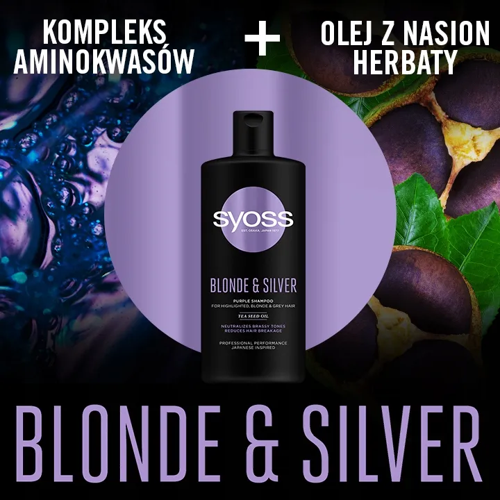 Șamponul Syoss Blonde & Silver este special formulat pentru părul blond, gri și decolorat. Curăță delicat părul și scalpul. Conține pigmenți corectivi pentru a neutraliza tonurile de cupru. Ajută la reducerea ruperii părului, înmoaie, conține aminoacizi care întăresc părul.