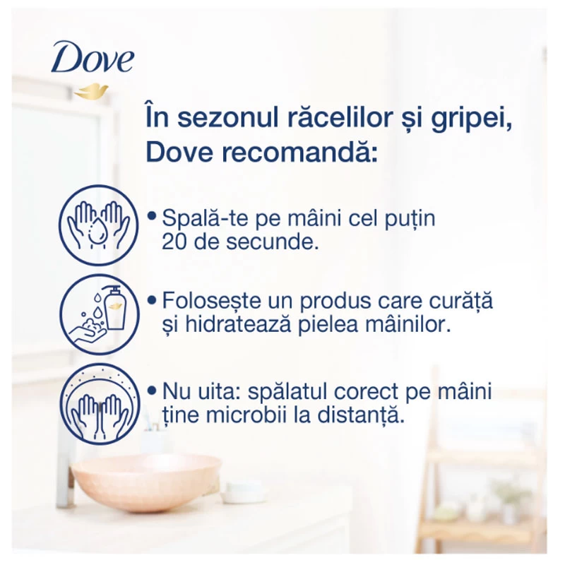 - săpunul-cremă lichid Dove Refreshing Care face ca spălatul mâinilor să fie o experiență revigorantă, iar pielea mâinilor se va simți regenerată;