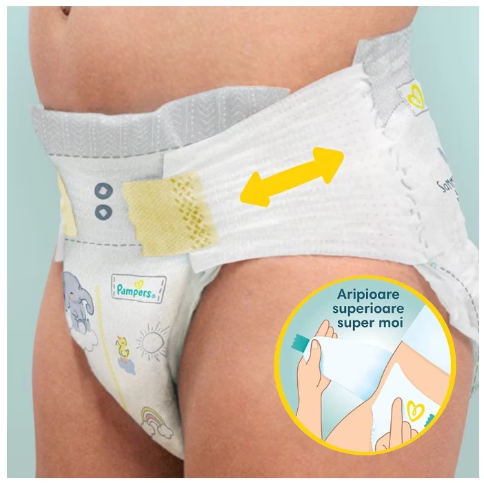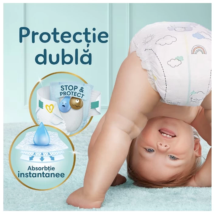 Pielea bebelușului tău poate fi de până la două ori mai subțire decât a ta, ceea ce o face deosebit de sensibilă la frecare și iritații. De aceea, Pampers Premium Care este alegerea numărul 1 a mamelor, deoarece sunt mai moi și mai uscate ca niciodată.